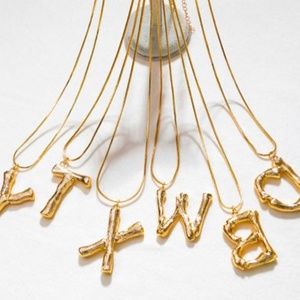 Gold P Initial Bamboo Necklaces This Initial Letter Gold plated Bamboo style NEcklace is so classy and elegant, you will surely be a head turner~ . • ♥Length and Size♥ Name Necklace Length:20"+2" Name Pendant Size:2.1"x1.1" Which have a Extension Chain The Large Initial Necklace is made of 316l stainless steel, never tarnishes / rust. Has snake chain with extension - very substantial