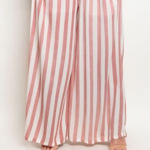 5 ⭐️ rating! Plus size elastic waistband striped wide leg pants.