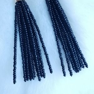 Black bead fringe earrings