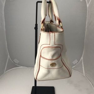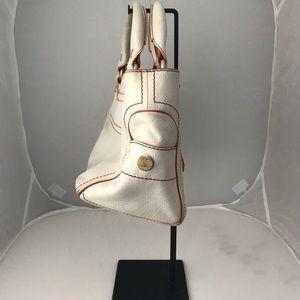 Vintage Celine “Boogie” White Leather with Red Stitching Satchel.