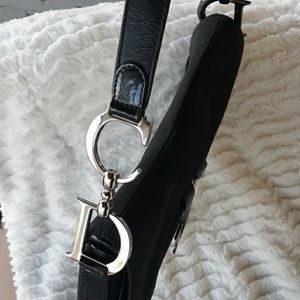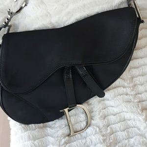 Authentic vintage Dior Saddle bag all back canvas bag with silver hardware. This bag has been preloved and is in good condition.