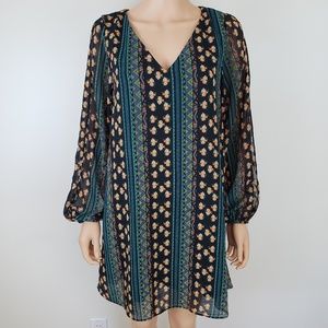 Intu Dress Flowy Tribal Floral Print Tunic Top XL Sheer Beach Pool Cover Up