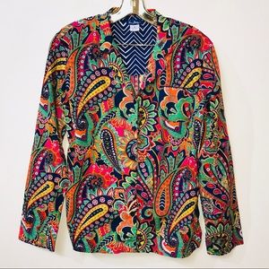 PAISLEY-POP!!! Great classic look for all seasons. Wear with dark jeans in fall for pop of color with a bright tank. Also looks great with white pants or skirt for spring. Light weight fabric works great for layering!