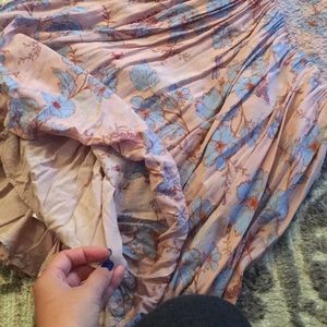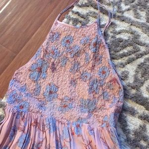 Pink floral sun dress. Adjustable straps in the back, open back. Two layers of fabric on the skirt. New condition.