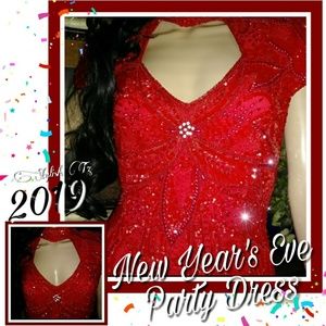 Gorgeoue NITE LINE Red Beaded Sequence Evening Dress