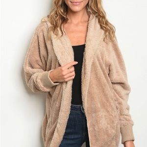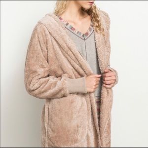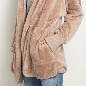 OS Teddy Fuzzy Fleece Cardigan Super Soft Taupe