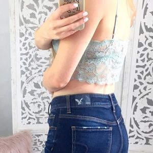 This bralette is not only adorable but also super comfortable! It has super cute lacy detail and is a very pretty mint color. Size medium! Go ahead and make an offer!😊
