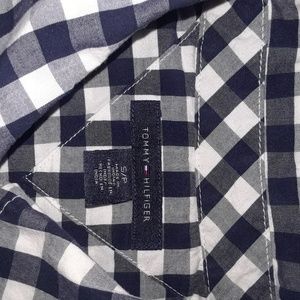Blue and white Tommy Hilfiger Button Down shirt. Size Small. Pair with your favorite pair of jeans for a great casual outfit!