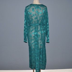 Vintage LANE BRYANT Green Sheer Peignoir Robe [F5]