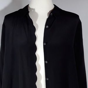 Banana Republic elegant button up black silk shirt with nice wave design on the collar, cuffs and placket. Long sleeves, very lite and slightly sheer.