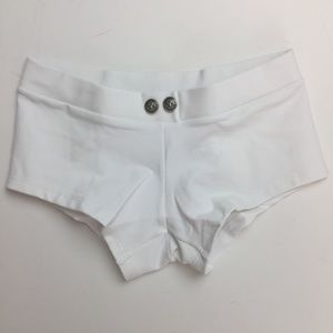 Lino Fitness compression ultra lowrise booty white shorts with back pockets and fake 2 front buttons. Perfect for your fitness photoshoot, running at the beach, volleyball, etc.