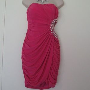 GORGEOUS PINK FORMAL DRESS *LIKE NEW* SIZE MEDIUM, IN LIKE NEW EXCELLENT CONDITION, ONLY USED ONCE. FROM A PET FREE SMOKE FREE HOME. TRULY BEAUTIFUL DRESS, EVEN PRETTIER IN PERSON. WITH THIS DRESS, YOU WILL HAVE THE BEST AT THE PARTY! Has some stretch to it for a more versatile fit.