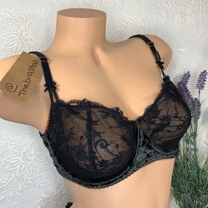 NWT Victoria’s Secret Dream Angels Unlined Uplift Bra. Push up without padding style. Hidden slings offer a natural lift. Black velvet & lace. Size 32DDD