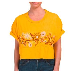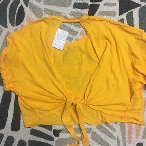 New with tags! Free People open back mustard yellow crop top. Front has etched flower design. Size medium. Non smoking household.