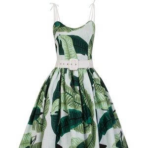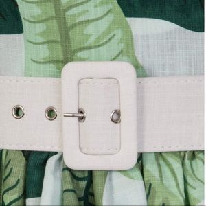 Our Jade Banana Leaf swing dress is a gorgeous tropic filled delight! With a superb banana leaf print she's made from textured breezy cotton that's super comfortable swinging beautifully when in motion. Jade comes with a chunky white PU backed belt to cinch in the waist, two welted side pockets for practicality, four adjustable spaghetti straps.