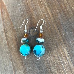 Luxury imported Czech table cut glass beads with Picasso edges, gradient teal, blue and tan. All integrated to make this gorgeous beach vibe. Hint of Amber Swarovski crystal on sterling silver hooks. Because you are too unique to wear department store jewelry, handmade by me. Discounts given on multiple item purchases