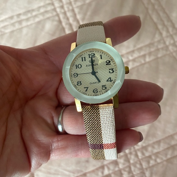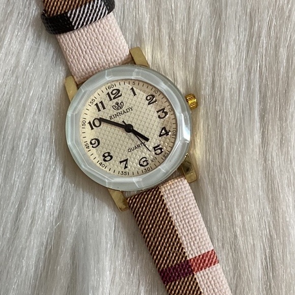 Beautiful plaid quartz watch, vegan leather. brand new in package.