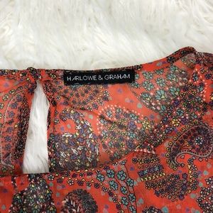 Harlowe & Graham Size Large Orange Paisley Blouse