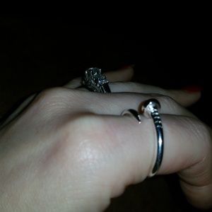Awesome sterling silver 925 plated nail themed ring. BRAND NEW NEVER WORN*** I have one!that I wear lovvvve it! Supposed to be adjustable, pretty hard to adjust, fits 8 ,9ish without adjustment. Perfect thumb ,index or middle finger ring. Plated not stamped.