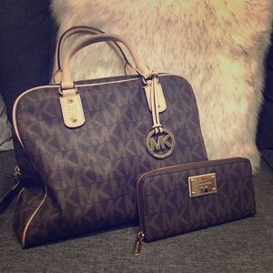 Gorgeous MK purse and wallet set! Both fully zip. Wallet is brand new and purse was only used a few times with minor wear only on the handles and one tiny spot inside as pictured.
