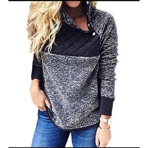 Sherpa/plush quilted snap button pullover sweater