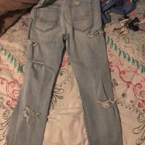 rips all along front and back, light wash, frayed ends. they’ve been sitting in my dresser for months never worn