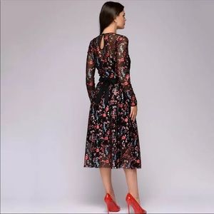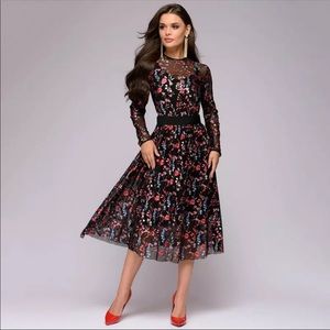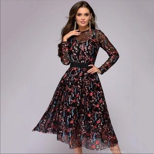 PREORDER NOW! Embroidered Floral Black Midi Dress