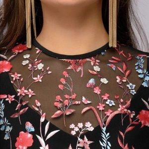 Embroidered floral print.