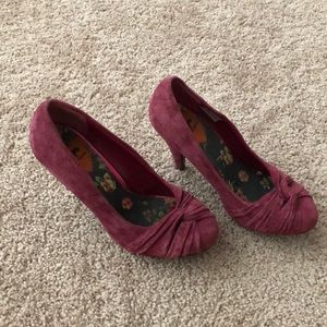 Rocket Dog faux-suede pumps, size 6 1/2. Knot accent in front. 3 1/2 inch heels. Color is a mauve/lighter burgundy. Barely worn.