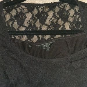 Perfect cocktail/event dress. Very form fitting. Worn only a couple of times in excellent condition. Attached black tank top camisole dress underneath. Can wear with a regular bra. 3/4 length sleeves. Hits mid-thigh on myself (5'4")