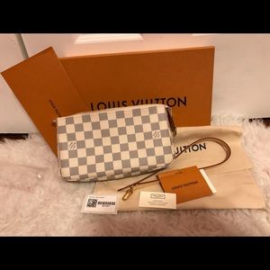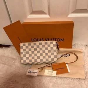 Very highly sought after Pochette Accessoires because of it’s versatility, can be used as crossbody if you add a crossbody strap, or use as catchall or clutch or shoulder bag. Difficult to find online & in stores with a very long waitlist..