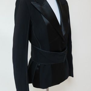 Tom Ford Jacket Belted Mesh & Satin-Paneled Crepe Black Size 42
