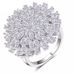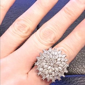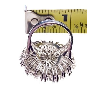 925 SilverPlated White Sapphire Chrysanthemum Ring: stunning is an understatement! This statement ring truly makes an impact with its many sparkling natural white sapphires in the shape of a large chrysanthemum flower. Lead and nickel free.