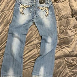 These jeans have minimal wear and super cute intact pockets. They are missing one rivet that hold the brand patch on the back of the jeans. Otherwise all the other rivets are attached!
