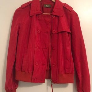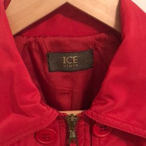 NWOT. ICE by ICEBERG red bomber jacket with zipper and button closure. Middle panel can be worn as in first picture (buttoned on) or removed as seen in second picture. Never worn. Purchased in Italy.