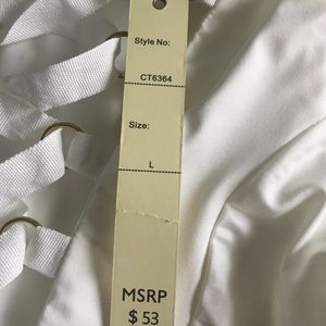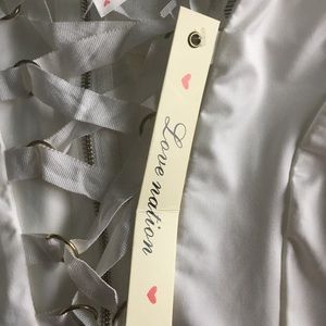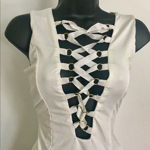 Love this white ribboned front lace up bodysuit. it has a back zipper.