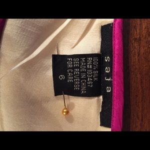 Smooth, smooth cream silk and a gorgeous pattern of “painted” flowers offset by a dark blue hem. Fully lined.
