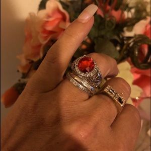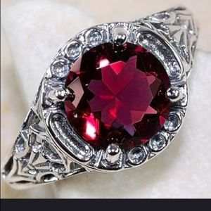 2Ct London Ruby๐S925, Sterling silver with 8 cubic Zirconia's surrounding center stone, Amazing &perfect for wedding gifts, anniversaries ๐ซ birthdays ๐ holidays๐& or birthstone! Very, very pretty have matching earrings, & Vintage Statement Necklace Set! ! ๐๐๐๐ฅ๐๐๐