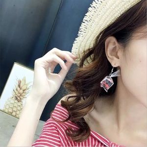 Rare! Kawaii Gold Fish In A Bag Earrings