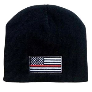 Thin Red Line on U.S. Flag Winter Beanie Cap. Whether you are a first responder, fireman, or you just like to show your support you can definitely also Keep warm with this stylish beanie cap.
