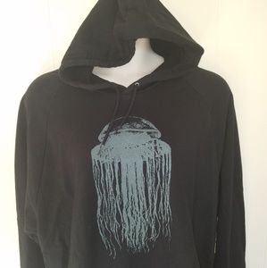 Original jellyfish artwork silk-screened in glow in the dark ink! Limited edition, 90% combed cotton, 10% polyester lightweight fleece sweatshirt. Brand new from the artist's shop. Made in USA! Please order by measurements: 2XL measured flat from armpit to armpit is 25" across and the length from shoulder to bottom hem is 31.5" long. Prewashed.