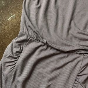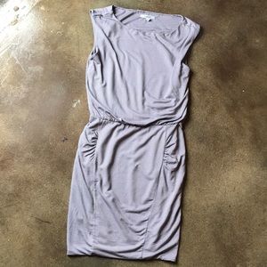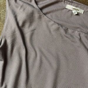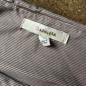 Athleta Westwood micro stripe dress in mocha and white. Cinched waist with ruched sides. Stretchy and comfy. Minimal wear, in great condition.