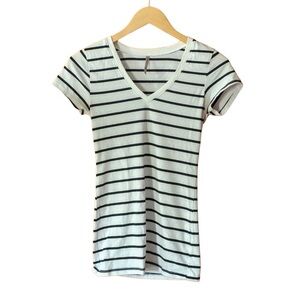 “Heart & Hips” Black & White Striped V-Neck T-Shirt | 2 for $10 Bundle Item