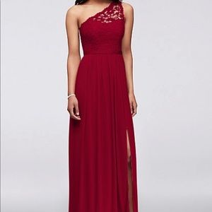 Size 22 David’s Bridal bridesmaid dress. Could very well be used as a prom dress. The strap was taken up as it was loose in the chest area. Wine color. The red dress stock photo is to give a better idea of the dress. New with tags, smoke free and pet friendly home.