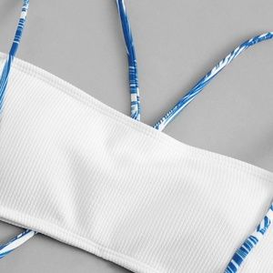 Ribbed polyester (stretchy) material ~ Mid Rise Bottoms + Padded Bandeau bra top (removable padding)