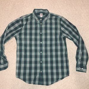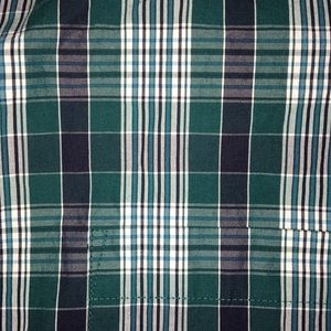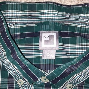 Green, white and black plaid shirt from JCPenney. No rips, tears, stains or pilling, from a pet and smoke free home. Brand new condition.