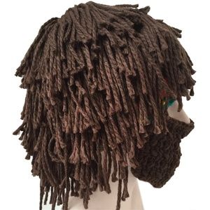 Mask hat with whiskers, woolen wig and Roman knight helmet knitting hat
