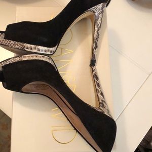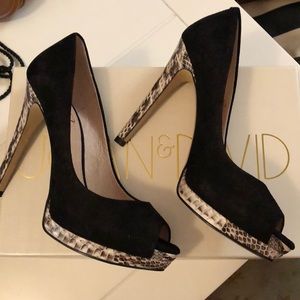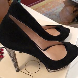 Joan & David black suede heels snake skin heels and accents