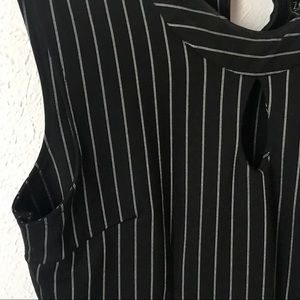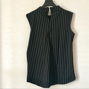 Zola fashion sleeveless striped formal wear. It’s a classic formal wear which is too large for me. it’s a sleeveless piece with a round Neck and small cut out in center. The back has a zipper. It’s vertically striped throughout. Pair them with trousers and you’ll rock interviews!