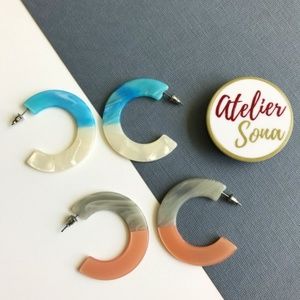 Acrylic Semi Hoop Earrings Blue by Atelier Sona